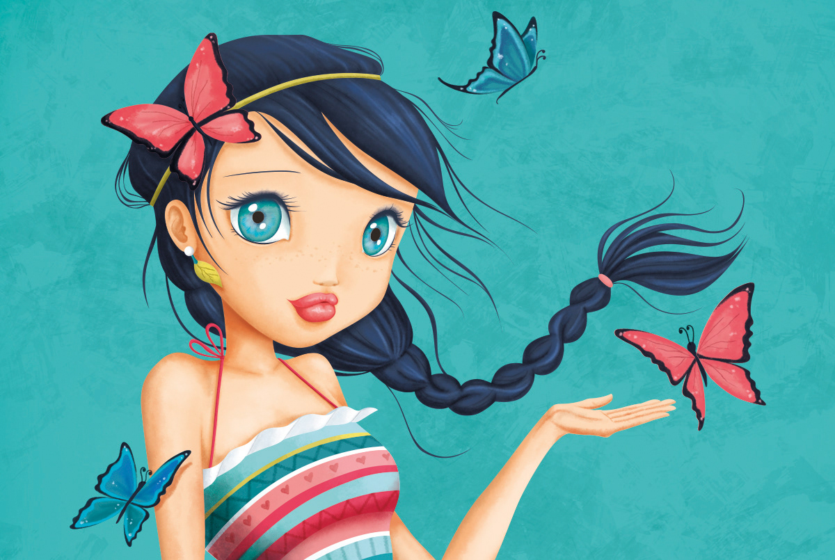 Request for an illustration of a girl for a stationery collection aimed at girls aged 8-9 years old.